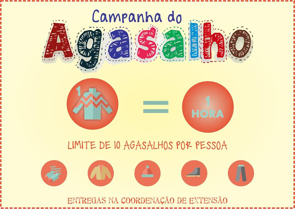 O objetivo é arrecadar agasalhos que serão encaminhados para a doação em Governador Valadares. As doações podem ser entregues no Setor de Coordenação de Extensão da FADIVALE. A cada agasalho doado o aluno ganha 1 hora de atividade complementar.