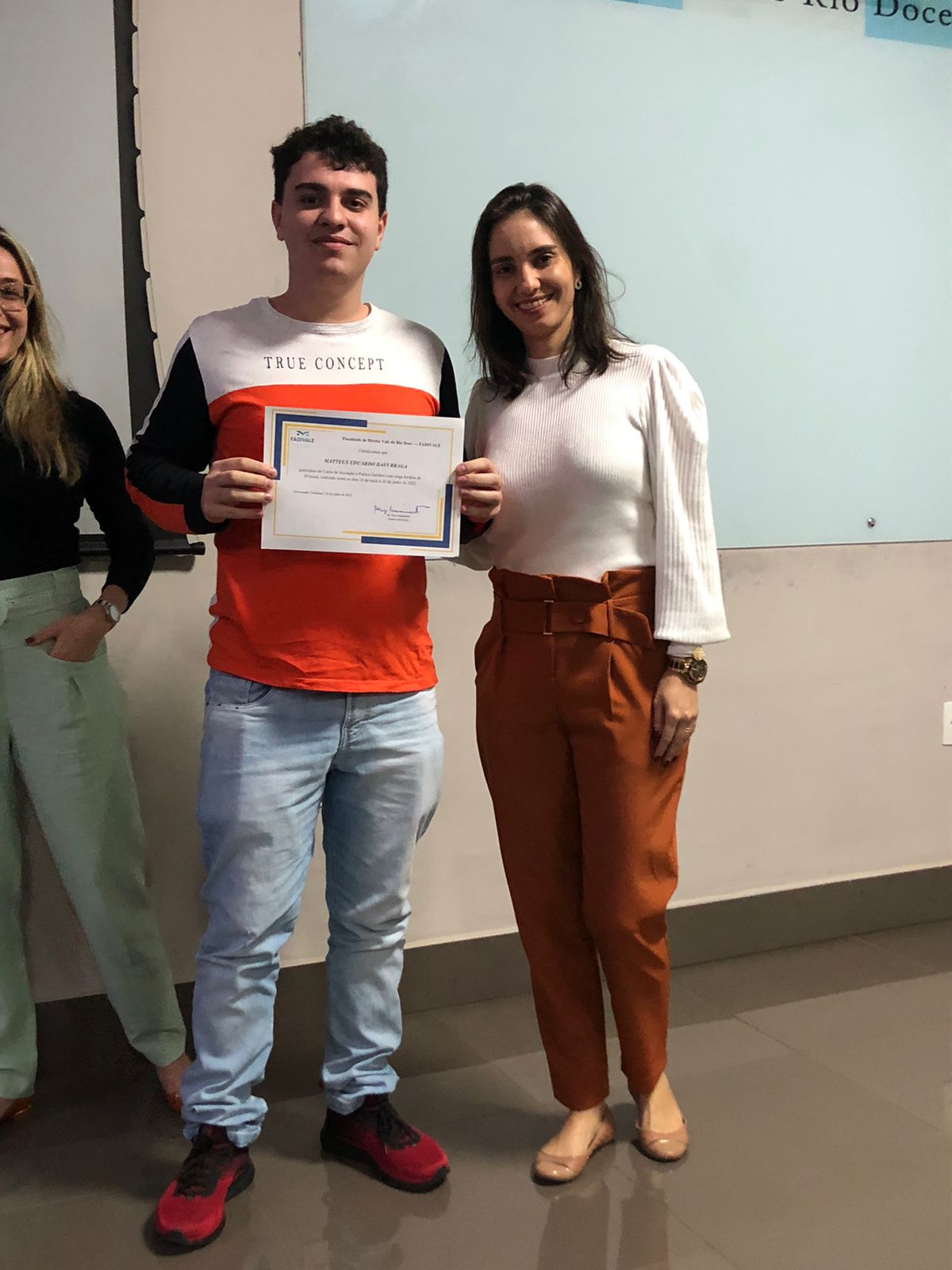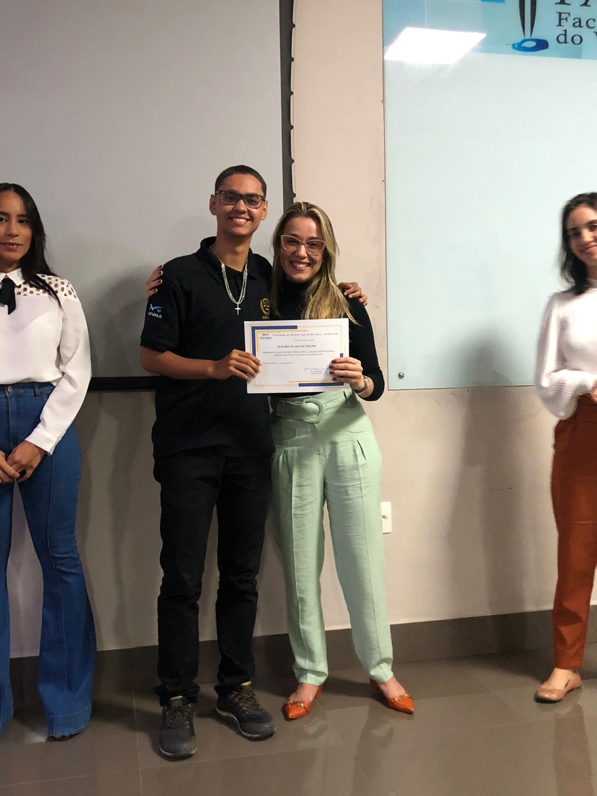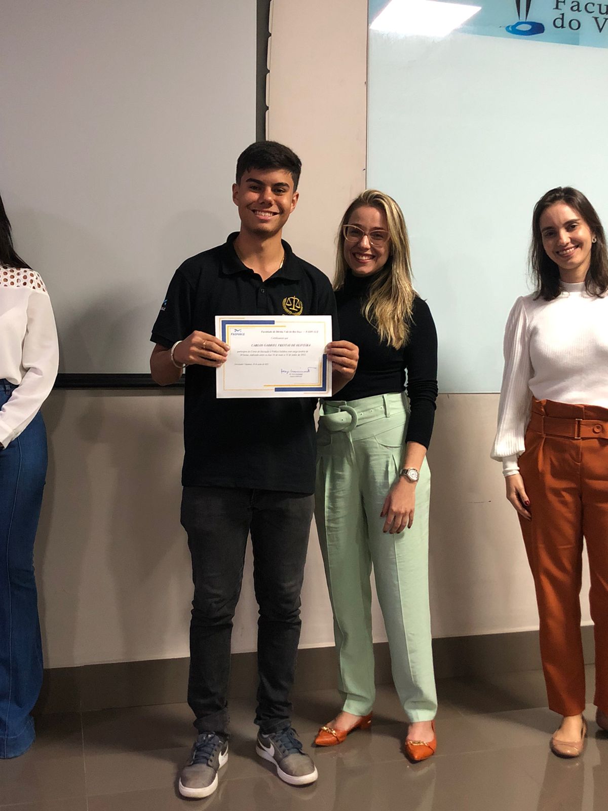 Na última segunda-feira (20/06), ocorreram as cerimônias de entrega, a alunos do 1º período da FADIVALE, do certificado de conclusão do 1º Curso de Iniciação à Prática Jurídica.